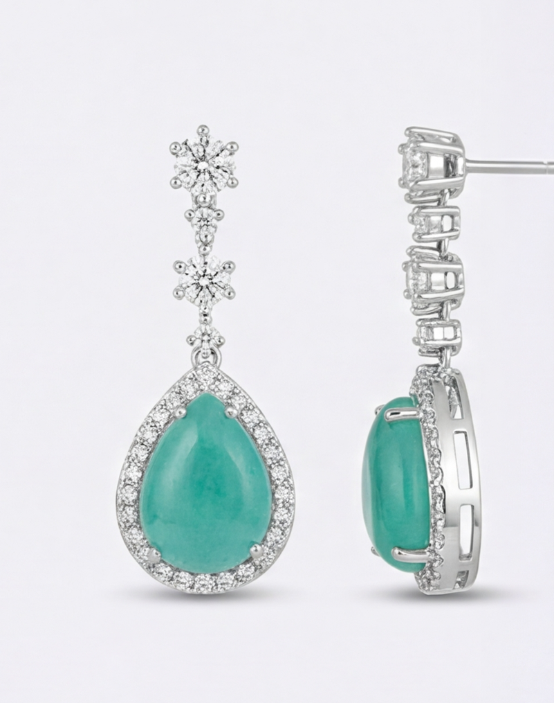 • Luminous aqua-mint colored center stones (Simulated Jade/Chalcedony)