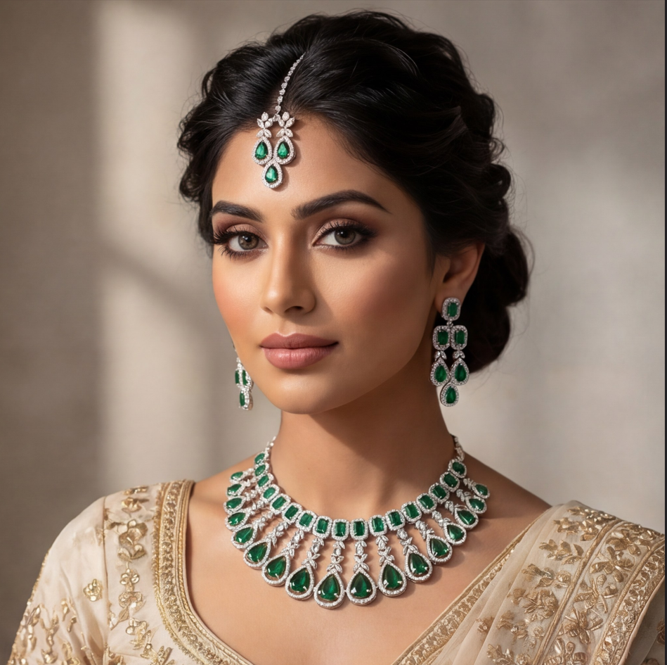 The Royal Emerald Empress Bridal Set (with Maang Tikka)